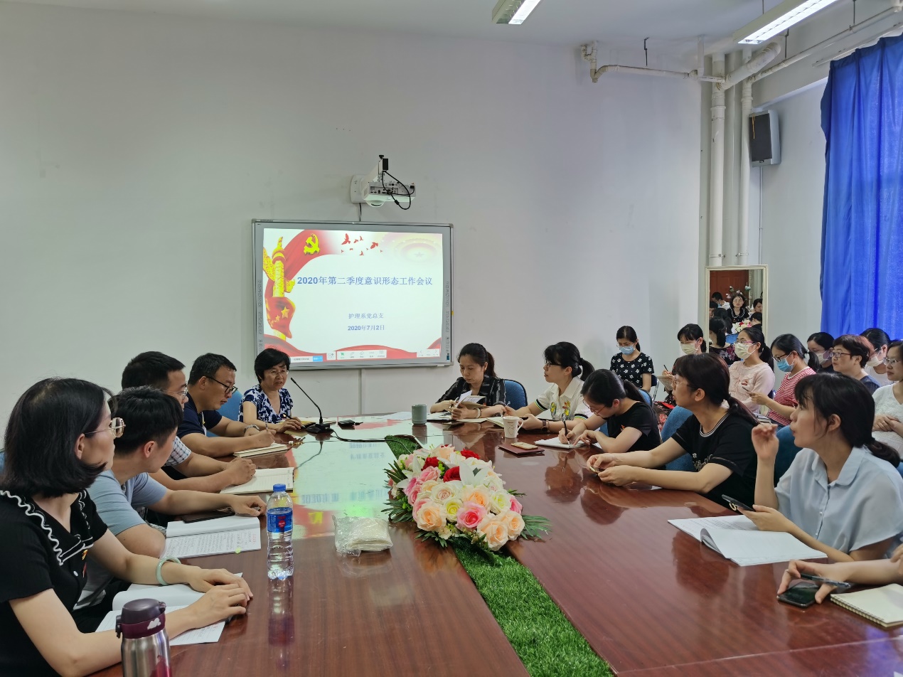 2020年7月2日,护理系党总支于护理系301会议室召开2020年第二季度意识形态工作会议,会议由护理系党总支书记谢涛主持,护理系全体教职工参加会议。