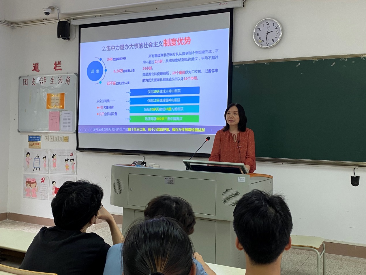 为深入学习贯彻习近平总书记关于疫情防控工作的系列重要讲话精神,展现疫情期间体现出的中国精神。9月24日,我院党委委员、副书记李美华在教学楼115为护理系师生讲授“形势与政策”课开学第一课。