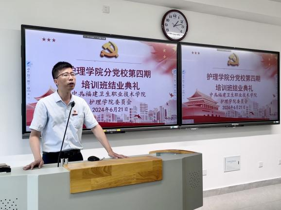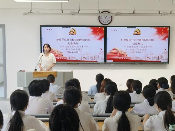 2024年6月21日,护理学院党总支分党校第四期培训班结业典礼在护理学院第四阶梯教室顺利举行。此次大会邀请了学院党总支副书记林来元、培训班全体学员参加,由党总支专职组员许慧琼主持。