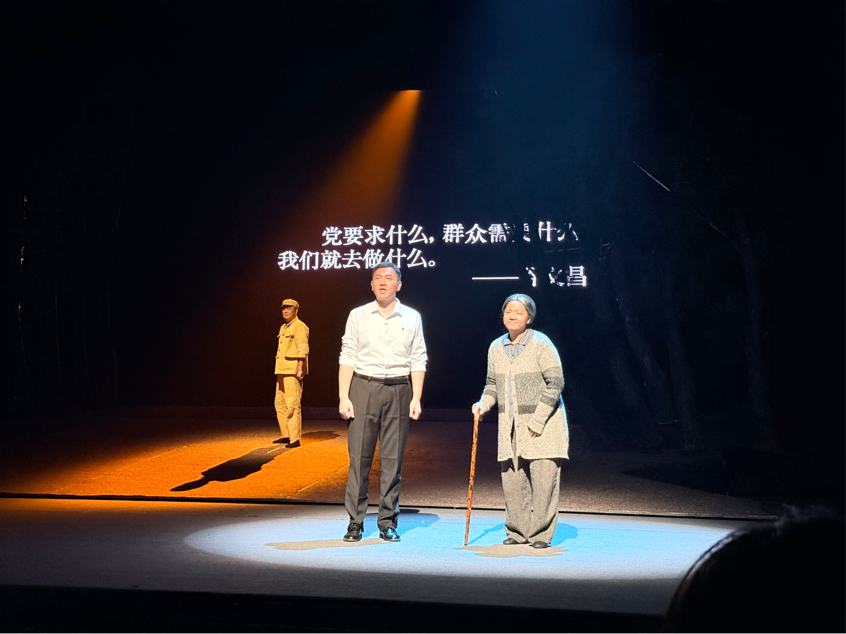 谷文昌同志一生扎根基层、务实为民,用实实在在的行动诠释了什么才是共产党人应有的政绩——不是虚浮的数字,不是表面的光鲜,而是老百姓发自内心的认可,是“先祭谷公、后祭祖宗”的深切怀念。情景党课《人民公仆谷文昌》以真实感人的事迹为素材,通过细腻的情景再现,生动展现了他在东山带领群众植树造林、治理风沙、改善民生的奋斗历程。舞台上,他不畏艰难、一心为民的形象跃然眼前,一句句朴实的话语、一个个动人的细节,深深打动了在场每一位师生。