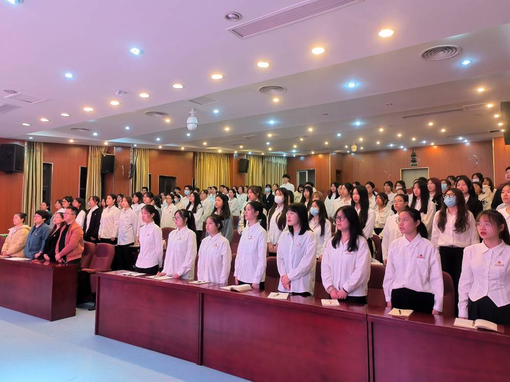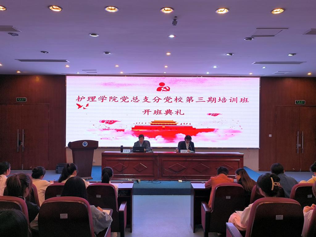 为学习宣传贯彻习近平新时代中国特色社会主义思想和党的二十大精神,深入落实新时代党的建设的总要求和新时代党的组织路线,切实做好入党积极分子的培养教育工作,充实党员队伍后备力量,提升党员发展质量,严把发展党员“入口关”,4月6日晚,护理学院党总支分党校第三期培训班开班典礼暨党课第一讲在实训楼报告厅顺利举行。护理学院党总支副书记林来元、学生党支部书记、辅导员及护理学院22级全体入党积极分子出席开班典礼,开班典礼由党总支专职组员许慧琼主持。