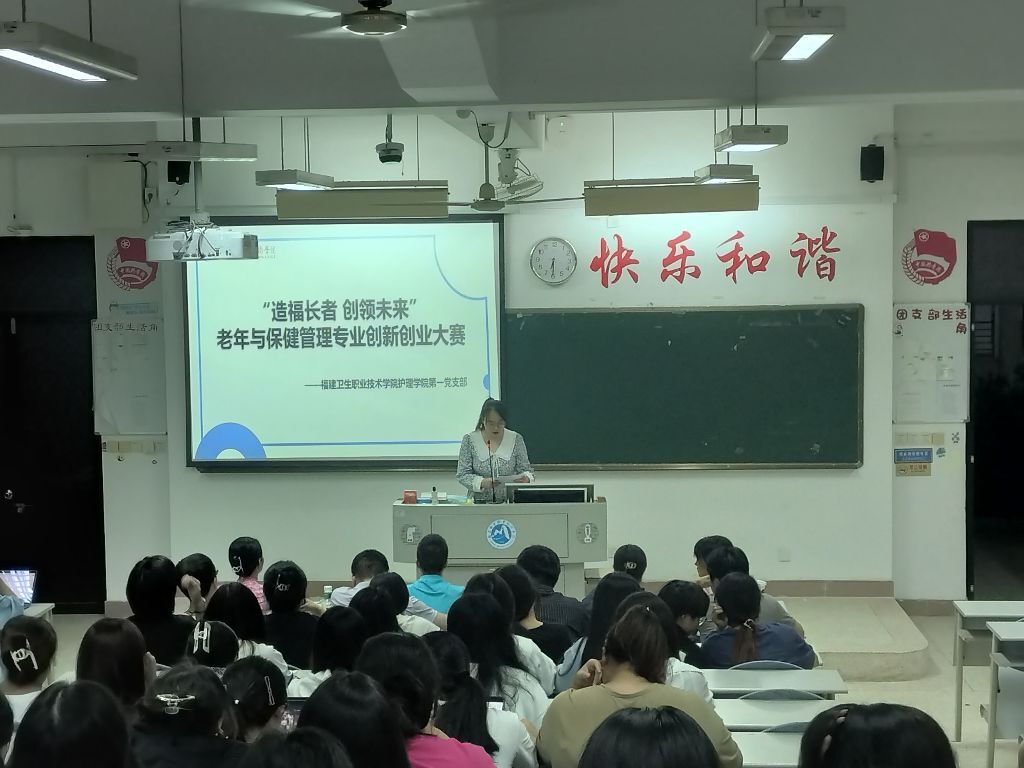为深入贯彻落实党的二十大精神,坚持创新是第一动力,激发大学生创新创业活力、培养创新能力、锻炼创业精神,同时实施积极应对人口老龄化国家战略,发展养老事业和养老产业,护理学院第一党支部在11月9日晚上,举办老年保健与管理专业首届创新创业大赛。望通过以赛促学,学生能将所学知识和社会实践相结合,增进老年人福祉。莅临本次比赛的领导嘉宾有教务处负责人李淼淼、护理学院党总支副书记林来元、护理学院第一党支部书记暨老年保健与管理专业带头人吴美丹、护理学院团总支书记林飞准、护理学院学生会负责人张龙老师,以及老年保健与管理专业教研室全体教师,大赛由2022级老年保健与管理专业辅导员林佳丽主持。