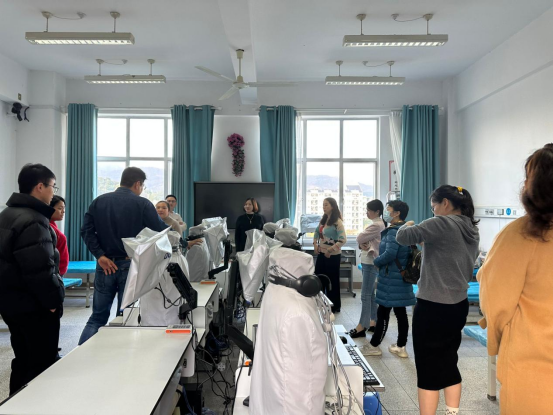 展课。林仁琴老师代表内科护理教研室介绍了如何基于智慧职教平台开展线上-线下混合式教学。李冬秀老师与厦门市儿童医院的张艺老师围绕“如何创设高效实训课堂”分别进行《内科护理》和《急危重症护理》的教学示范,并实地参观了内科护理实训室和急危重症护理实训室,为后续课程开展做准备。