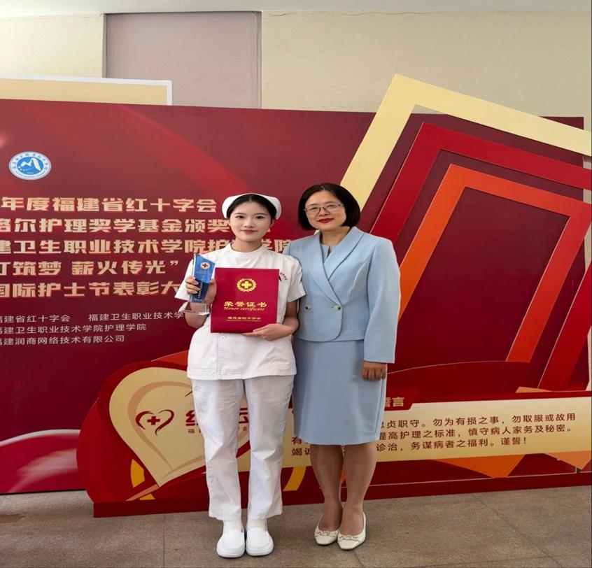 5月12日下午,2025年度福建省红十字会南丁格尔护理奖学基金颁奖仪式在我校举行,全省共有30名学生获奖,我院22护理301班陈美嘉同学获此殊荣。