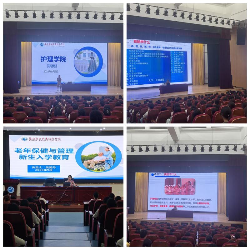 2025年9月7日至9月10日,护理学院分别在崇学厅、实训楼四楼报告厅、教学楼等地为2025级各专业新生开展入学教育,帮助2025级新生尽快适应校园环境,熟悉学生管理制度,了解专业学习情况,尽快开启大学新生活。