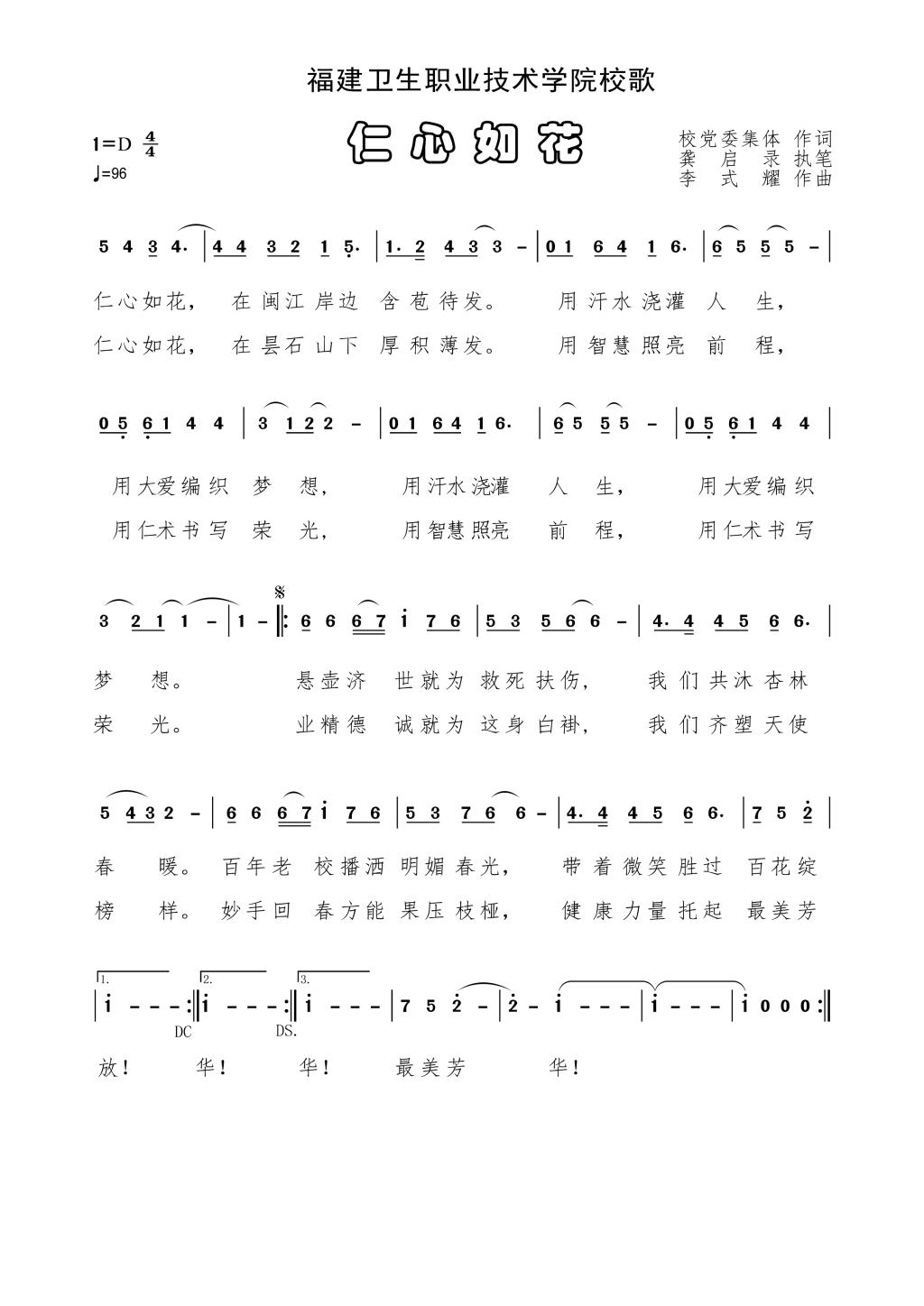 福建卫生职业技术学院校歌-仁心如花