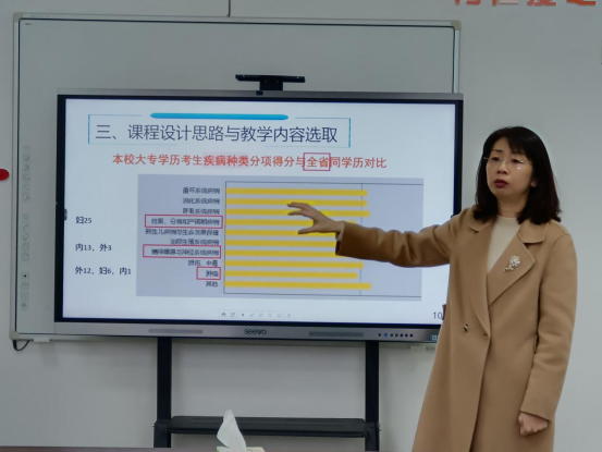 外科护理教研室主任吴明作为护考应试能力专项训练负责人,针对2022年护考情况进行了分析,并对2023年护考培训工作计划进行了介绍。骨干教师们针对护考的趋势及培训的具体工作进行讨论,并围绕如何提高学生的学习积极性、如何保证培训效果等问题建言献策。