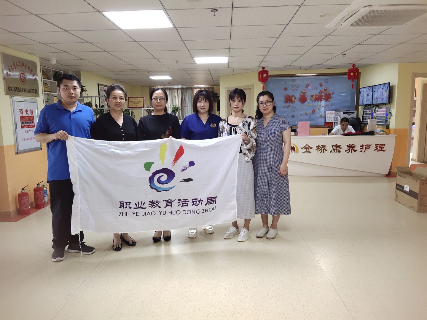 老年保健与管理教研室全体教师受到了金桥康养护理中心的热烈欢迎,在毛青董事长的带领下,先后参观考察了老年人评估室、住宿房间、活动中心、康复室及营养食堂等。各部门负责人介绍了金桥康养护理中心医养结合的相关理念及工作流程,并结合老年保健与管理的专业特点,介绍对即将到来的见习学生的各工作岗位见习带教及生活管理计划安排。