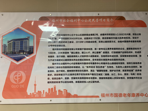 据悉,国德康养中心为福州市民政局为民办实事的重点项目,也是目前福州市最大的养老中心,园区内设置有一家五星级标准养老机构及二级综合医院,充分的达到“医养”结合,并以“让家人放心,让老人舒心”为服务目标,开园一年多,市场反响良好,目前千余张床位已接近饱和。通过本次企业参观与学习,增进了学生们对老年保健与管理专业就业的认识和对未来的憧憬。