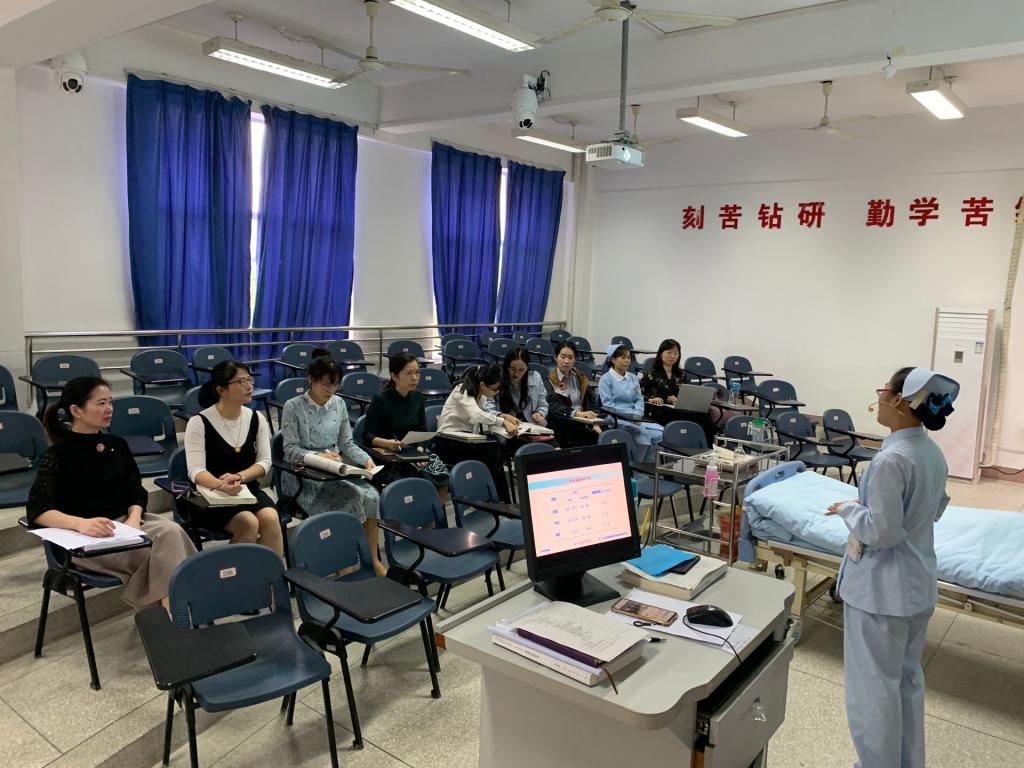 此次活动由贾箐箐老师主讲,贾老师阐述了本次集体备课的四个主要内容:低氧血症的分度、如何调节吸痰负压、吸痰手法及顺序、如何提炼并融入思政元素,并且拓展了经口鼻吸痰的禁忌症和并发症的内容。