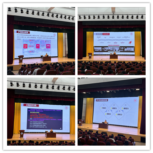 陈凤翔主任从护理就业前景、护士职业生涯规划、护士就业方向评估、护士职业目标设定、护士职业规划实施5个方面展开阐述。她通过引经据典解释了护士的定义及角色,并结合医院临床工作实际和自身丰富的工作经验向学生介绍了护士职业生涯规划和目标设定,最后通过生动有趣的切身经历为学生提供职业规划实施的建议,将现场气氛推到高潮。这些理论知识对护理、助产专业学生的专业认知提升、职业意识培养等都具有重要意义。