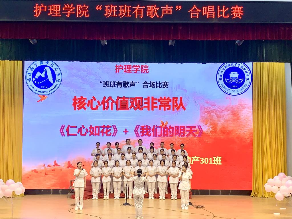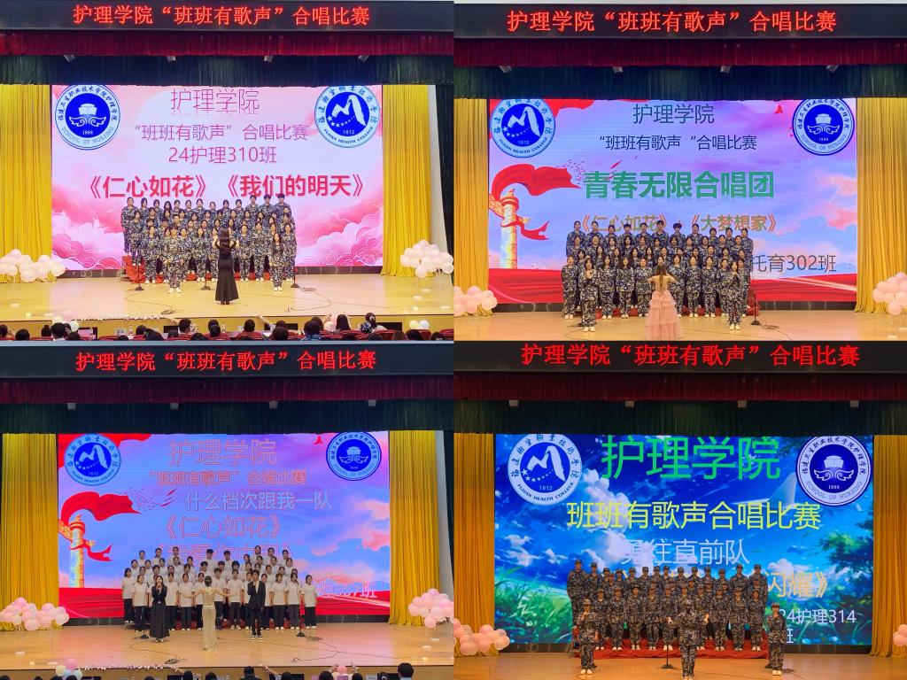 以嘹亮歌声唱出青春真情怀,以满腔激情奏响爱国最强音,护理学院以班级为单位,共计24个班参加此次合唱比赛,各班级按抽签顺序依次上场。分别表演校歌《仁心如花》以及一首朝气红星歌曲,让我们一起回顾一下大家出色的演出吧!