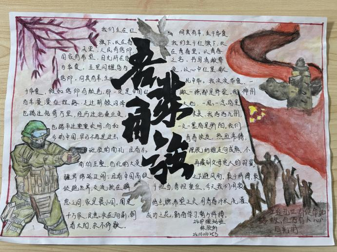 此次“‘易’起描绘爱国画卷,彰显时代青年风采”活动,为同学们提供了一个展示自我、锻炼能力的平台。绘画过程中,展现了同学们出色的艺术才华,更彰显了新时代青年积极向上、热爱祖国的精神风貌。这些手抄报不仅是艺术作品,更是以直观的方式向同学们传播着爱国主义精神,激励着更多青年以实际行动践行爱国之志,让爱国情怀在新时代绽放出更加绚烂的光彩。