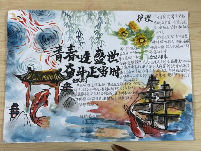 爱国是中华民族的优秀传统文化,是中华文明源远流长的血脉基因,习近平总书记强调:“要把爱我中华的种子埋入每个孩子的心中。”引导学生树立正确的国家观、民族观、文化观。为此,我校护理学院于2025年2月27日举办了一场以“‘易’起描绘爱国画卷,彰显时代青年风采”为主题的手抄报活动,激励大学生继承爱国主义优良传统,弘扬爱国主义精神,不断勇毅前行,为实现中华民族伟大复兴的中国梦努力奋斗。