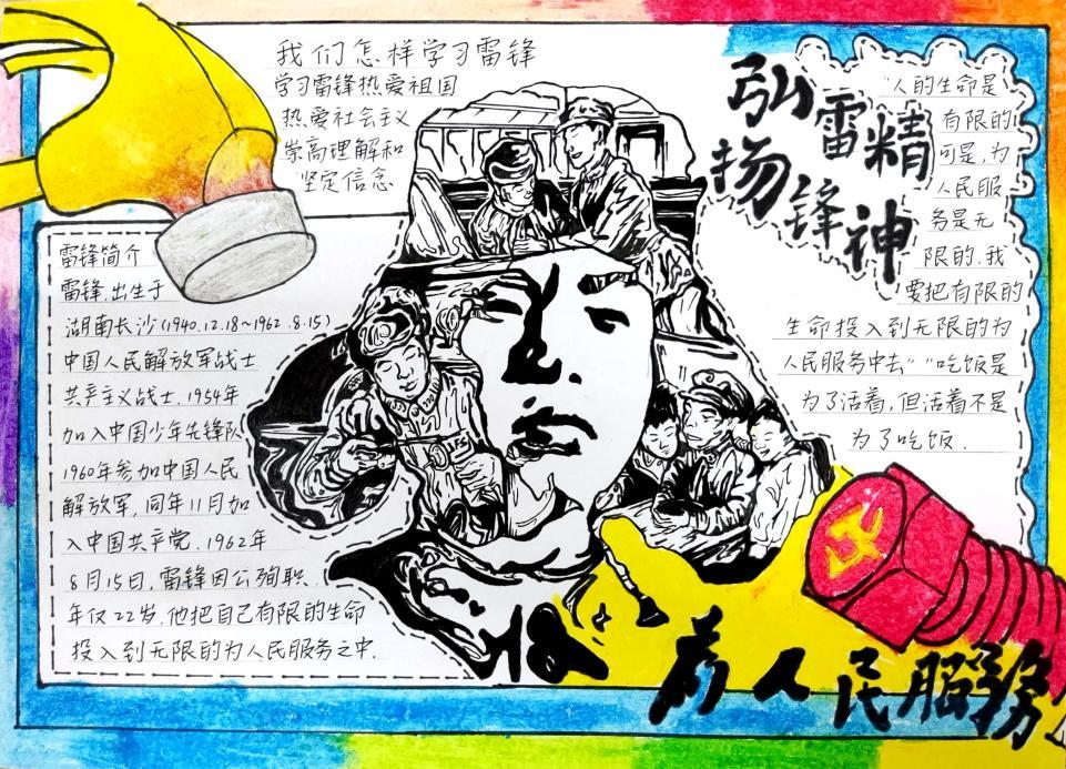 在这里,众人拿起画笔,通过绘制海报、手抄报、漫画等形式,生动地讲述雷锋的感人故事。让每一抹鲜艳的色彩、每一处巧妙的排版,都成为传递雷锋精神的桥梁,让那些温暖人心的事迹,在作品中鲜活呈现。