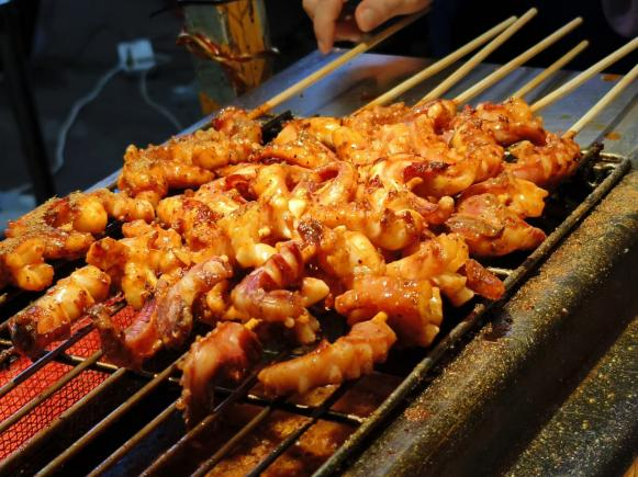 在这里还有美味的烧烤等着你。极嫩的肉质被烤的金黄酥脆,在灯光下散发着诱人的光芒,视觉和味觉的双重诱惑让人难以拒绝。