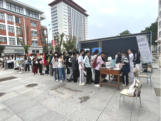 在本次活动中,同学们仿佛进入了五彩斑斓的创意世界。挑选自己喜欢的三种颜色并将其滴入水中,随后把扇子轻浸入水,手持画笔,在扇面上舞动,这是一场色彩的舞蹈。紧接着灵巧地运用“点、甩、弹、划”等独特手法,绘出一个个鲜明的、别具一格的图案。在此环节中,我们将收获自己绘出的唯一之扇,收获“10.10”最独特的纪念品。