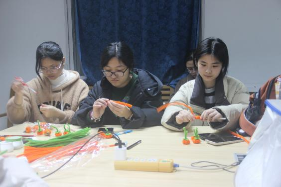 同学们运用扭扭棒、热熔胶、剪刀等工具,看似简单的一颗颗小柿子,大家都做的都万分认真。同学们轻轻地把扭扭棒卷上,再各种的穿插,过程中大家都小心翼翼,只为把手中的作品做的最美、最好!