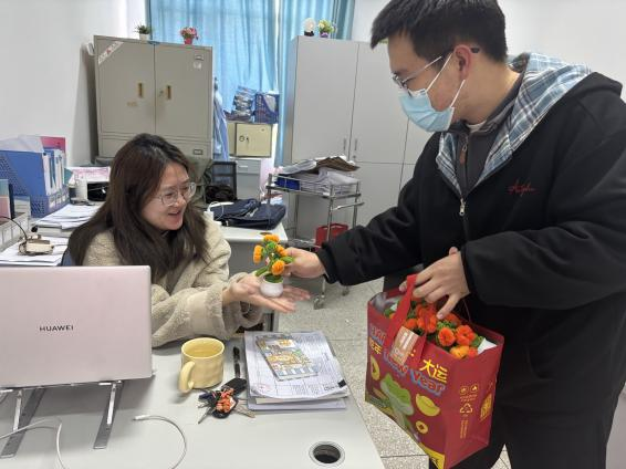 3月7日上午,学院学生代表们捧着亲手制作的礼物,带着全体学生的深情厚意,向辛勤耕耘的老师致以最崇高的敬意。这些创意满满的扭扭棒花束,虽不及真花那般娇艳,却蕴含着同学们无尽的感激与祝福。每一盆小花,都是对老师无私奉献的最好回馈。当老师们接过这特别的礼物时,脸上洋溢出的笑容,比任何语言都更能触动我们的心弦。