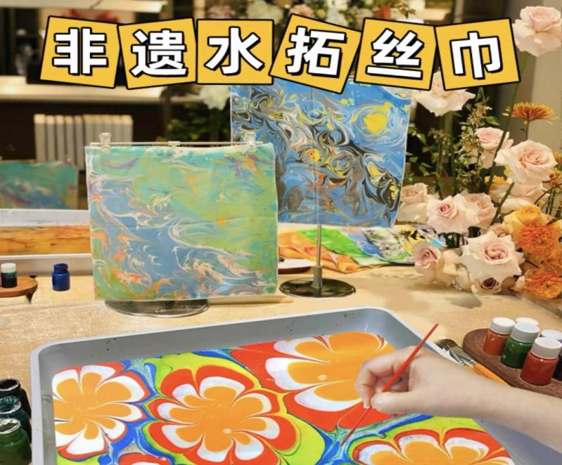 1、“水韵心愿,指尖艺术”水拓丝巾