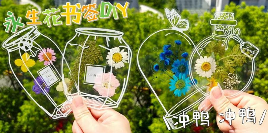 将永生花封入透明书签,压花、装饰,亲手创作。让浪漫花香伴你阅读,定格春日诗意。