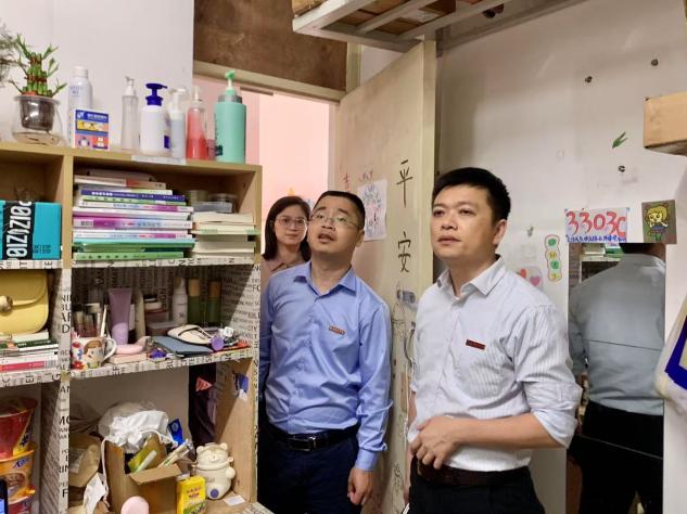 在走访过程中,副校长周雄与同学们亲切交谈,细致询问日常起居、学业进展及未来规划。他强调,学校高度重视“一站式”学生社区建设,将在暑期优先升级改善部分学生宿舍生活设施,努力为学生提供更好的学习生活环境。同时,他要求,护理学院要以“一站式”学生社区建设为契机,进一步完善主题宿舍创建机制,畅通学生意见反馈机制,把社区服务做实做细。