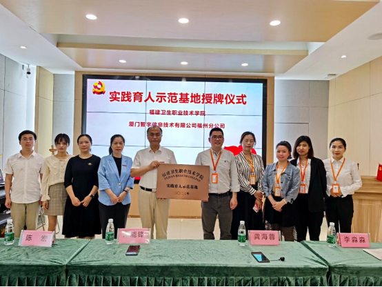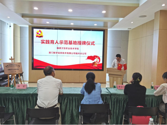 共建实践育人示范基地,是贯彻落实《关于深化现代职业教育体系建设改革的意见》,进一步实现产教融合,为学生社会实践提供良好的条件,培养学生的实践能力,培育高素质、专业型人才,是扩大探索校企深度融合的有益尝试。4月18日,福建卫生职业技术学院与厦门智宇信息科技有限公司共建实践育人示范基地正式授牌。校长许能锋,护理学院院长龚海蓉,教务处副处长、老年保健与管理专业带头人李淼淼,老年保健与管理教研室主任龚仁艳,厦门智宇信息科技有限公司福州分公司总经理陈宏,以及双方相关部门负责人、专业教师等共同出席仪式。