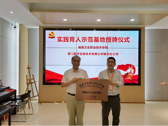 福建卫生职业技术学院与厦门智宇信息科技有限公司共建实践育人示范基地授牌仪式现场