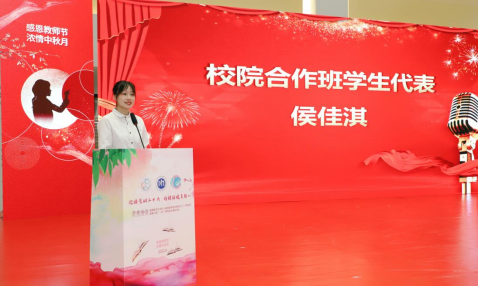 曹华代表院方致辞,他对我校各位领导的到访和校院合作班的学生表示欢迎,对在座的教师们致以节日的问候,他强调要注重师生之间的情谊,平等对待,友好相处,并指出医院建设与年轻人发展密切相关,未来的路不仅需要老师的陪伴,更需要同学的拼搏,师生携手共同进步、共同发展,共同搭建好充满阳光的平台。