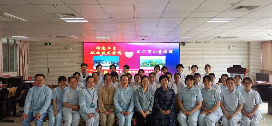 2021年3月30日,我校与厦门市儿童医院校企合作班首届新生儿护理专科培养课程结业证书颁发仪式在厦门市儿童医院举行。厦门市儿童医院科教科张敏主任、护理部叶茹明副主任,我校护理学院龚海蓉院长、辅导员卢桢妤老师,以及合作班师生参加颁发仪式。颁发仪式由叶茹明主持。