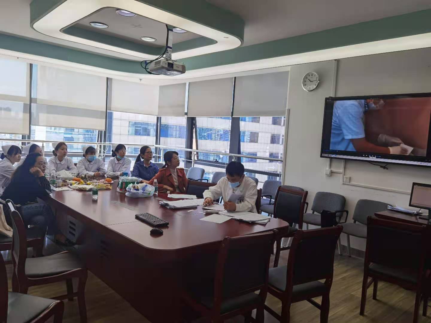 涂秀华老师还热情地为教研室的老师们分享了她制作的教学视频——《气胸病人的胸腔置管术》、《胸腔闭式引流管的拔管方法》、《肺癌病人的术前术后健康宣教》,交流了肺癌患者的微创胸腔镜手术治疗与护理,还向老师们展示了该科室获国家专利的多功能输液架,使老师们更新了知识,拓宽了视野。