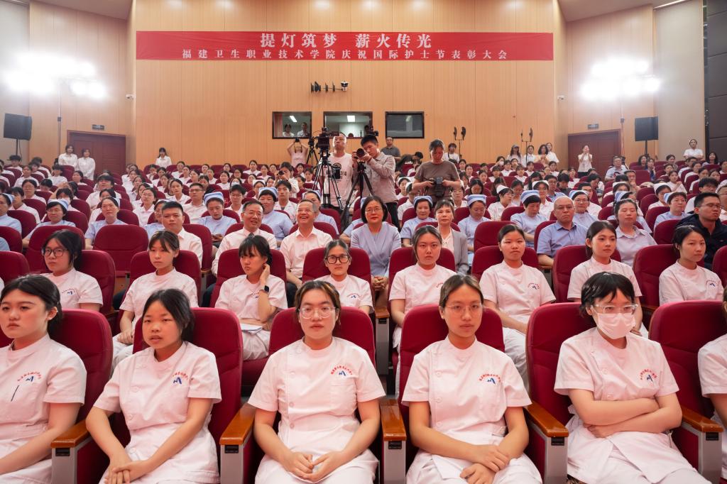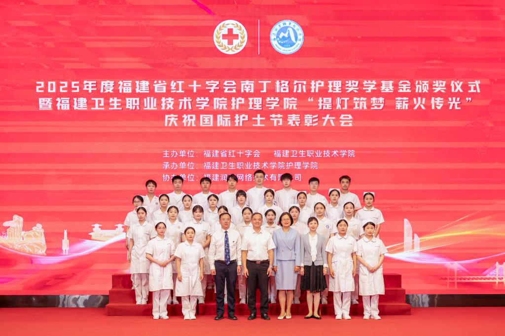 5月12日下午,2025年度福建省红十字会南丁格尔护理奖学基金颁奖仪式暨福建卫生职业技术学院护理学院“提灯筑梦 薪火传光”庆祝国际护士节表彰大会在福建卫生职业技术学院崇学厅举行。福建省红十字会党组书记何明华,第47届国际南丁格尔奖章获得者、福建省卫生健康委员会党组成员、副主任李红,福建卫生职业技术学院党委副书记、校长徐伟,福建省红十字会党组成员、专职副会长杨飞燕等出席活动并为南丁格尔护理奖学基金获奖学生颁奖。