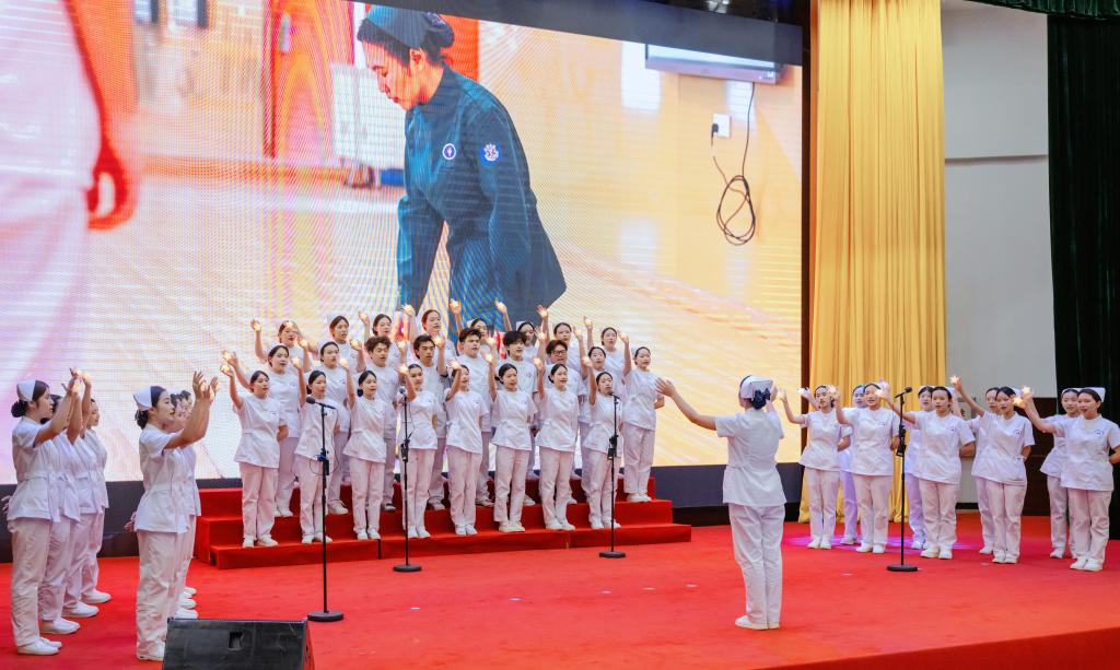 我校护理学院合唱队以《这世界赠予我的》深情献唱,演绎护理工作者“以生命温暖生命”的职业情怀,为颁奖仪式画上圆满的句号。