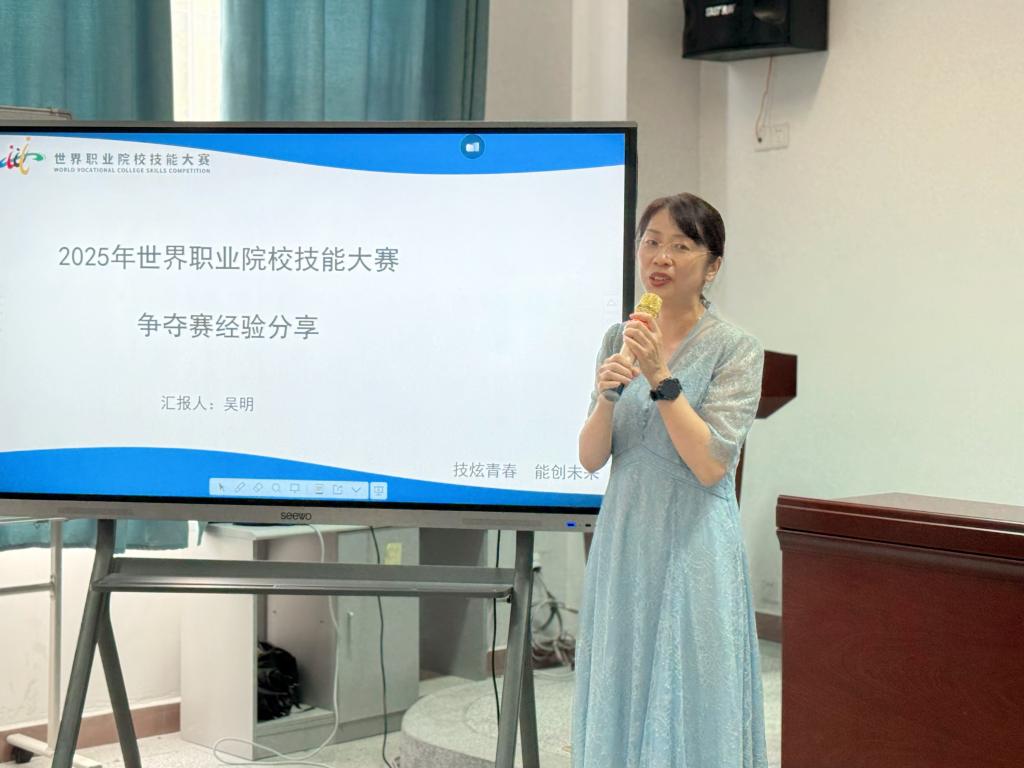 大赛指导教师代表吴明、林晓琼分享经验,从“日常教学中渗透竞赛思维”到“赛前模拟的魔鬼训练”,再到“心理调适的关键技巧”,他们细致地剖析备赛逻辑,强调“团队协作”与“初心坚守”的重要性。并表示指导是双向成长,愿助力更多青年教师成长,践行职业教育使命。