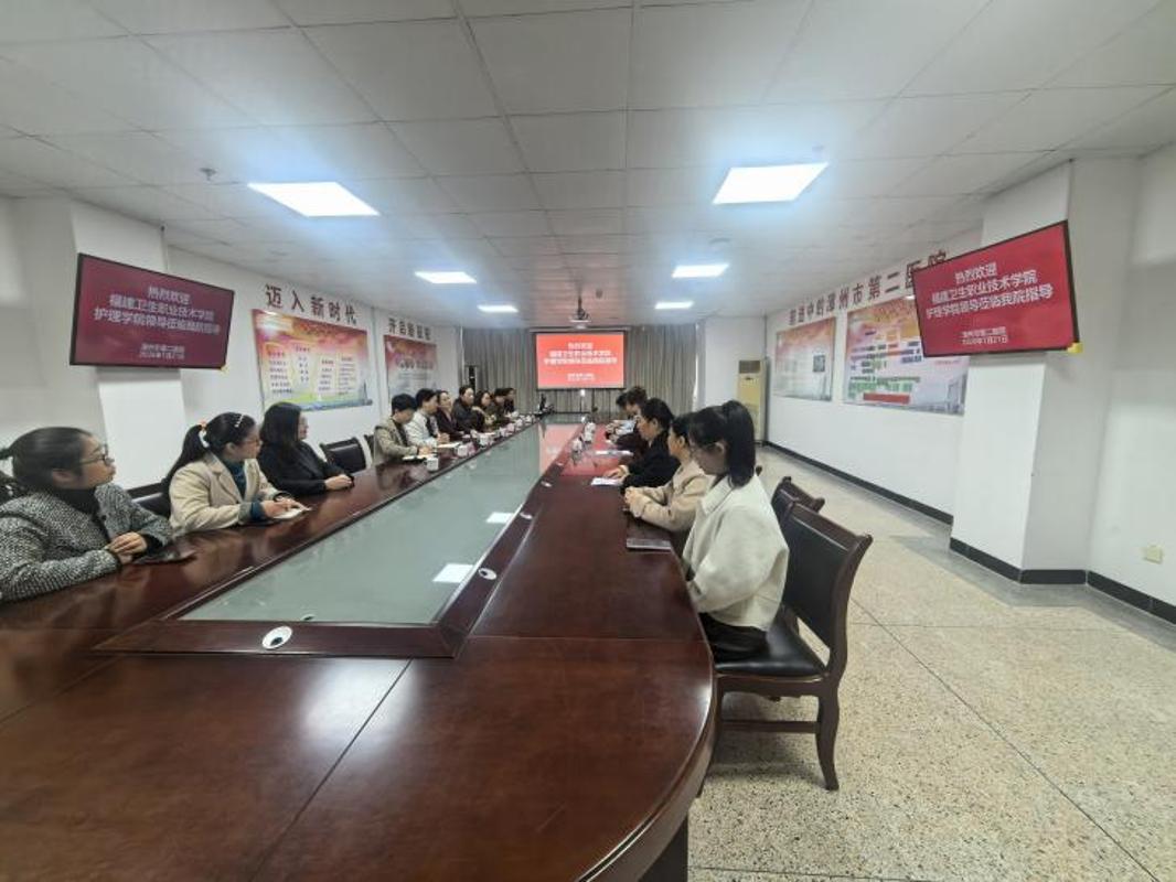1月21日,调研组辗转漳州、泉州两地,先后走访漳州市医院、漳州市第二医院、福建医科大学附属第二医院、泉州市第一医院。在漳州地区座谈中,双方聚焦区域医疗卫生事业发展需求,围绕护理人才需求、专业建设与实践教学、科教融汇等议题展开。医院方表示,期待与我校深化合作,建立长期稳定的人才输送通道,共同为基层医疗事业发展培养高素质技术技能人才。