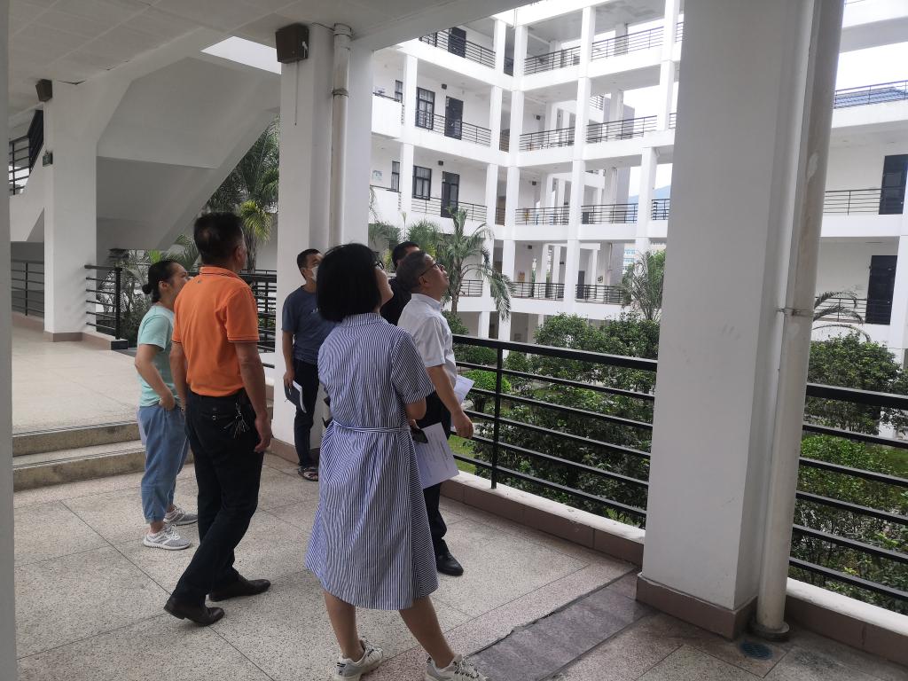 5月29日,陈贞健副院长带领后勤管理处人员对各部门报告的疑似房屋结构安全隐患进行现场复查。