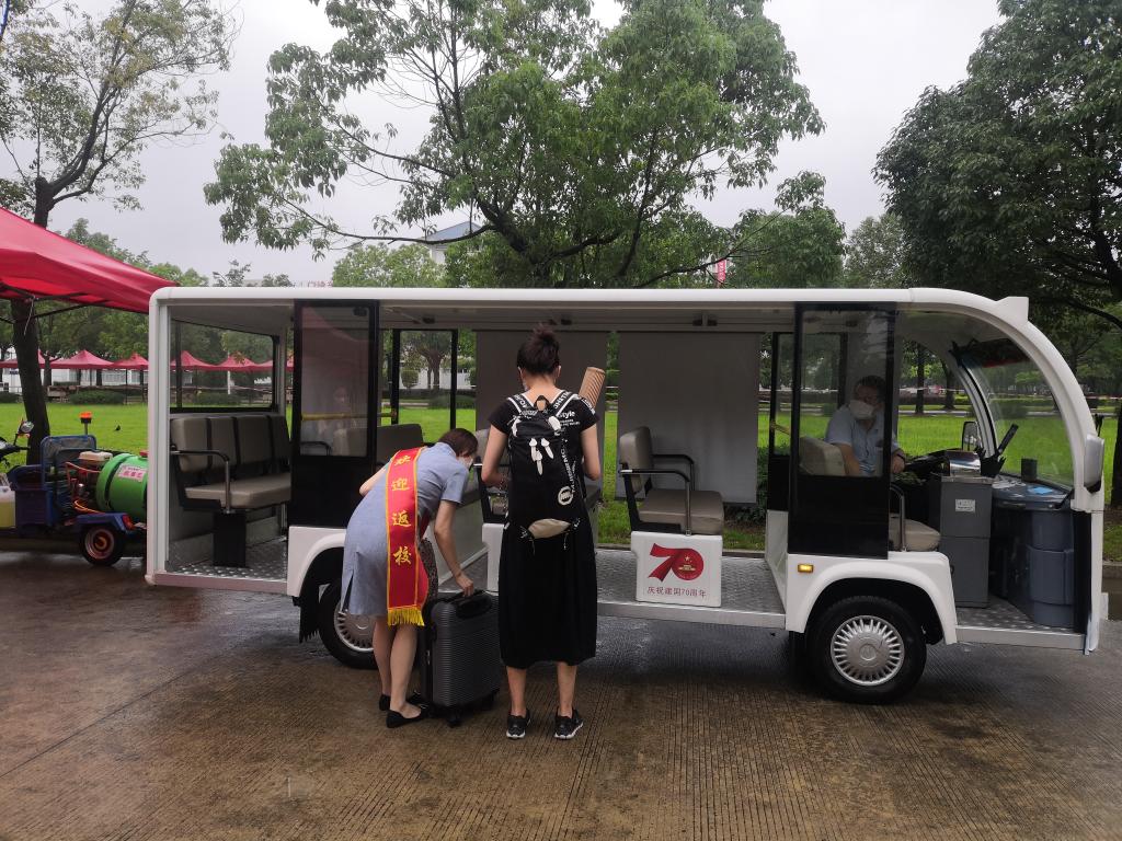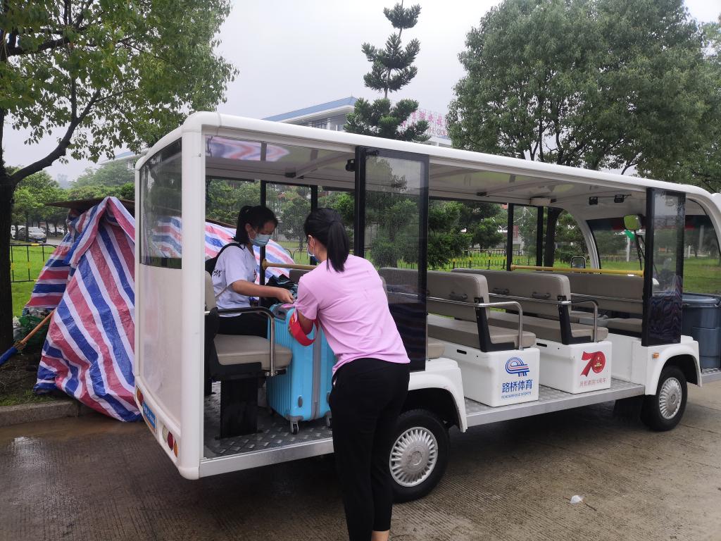 五是为学生提供便利生活服务。学生返校前帮助学生晾晒被褥,整理宿舍摆放杂乱的物品;学生返校当天安排三辆电动观光车将学生及其行李从校门口免费运送至宿舍区。