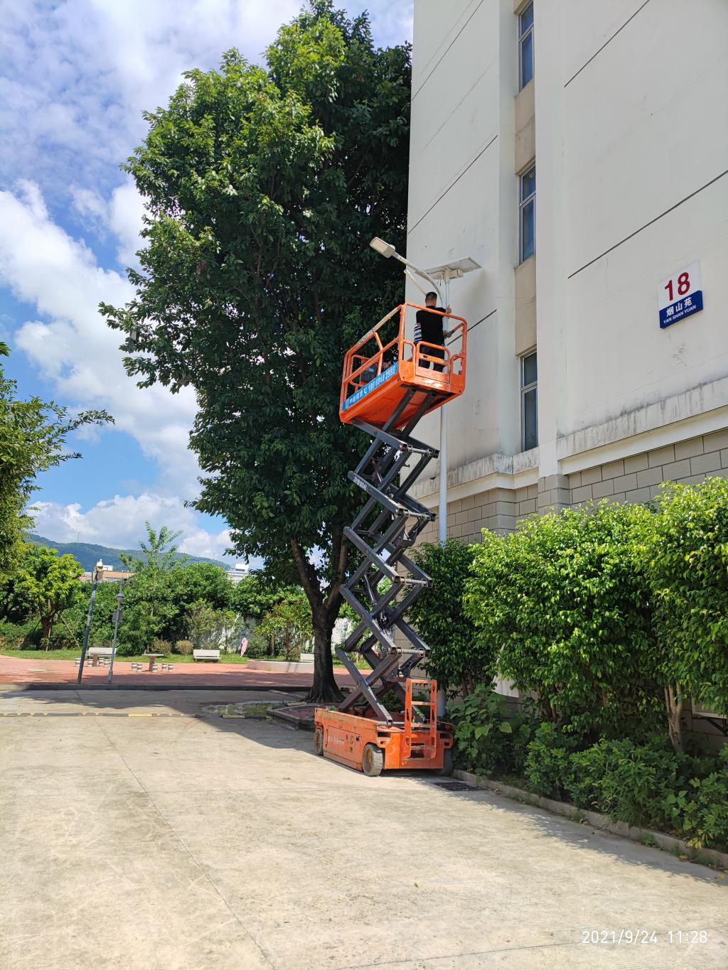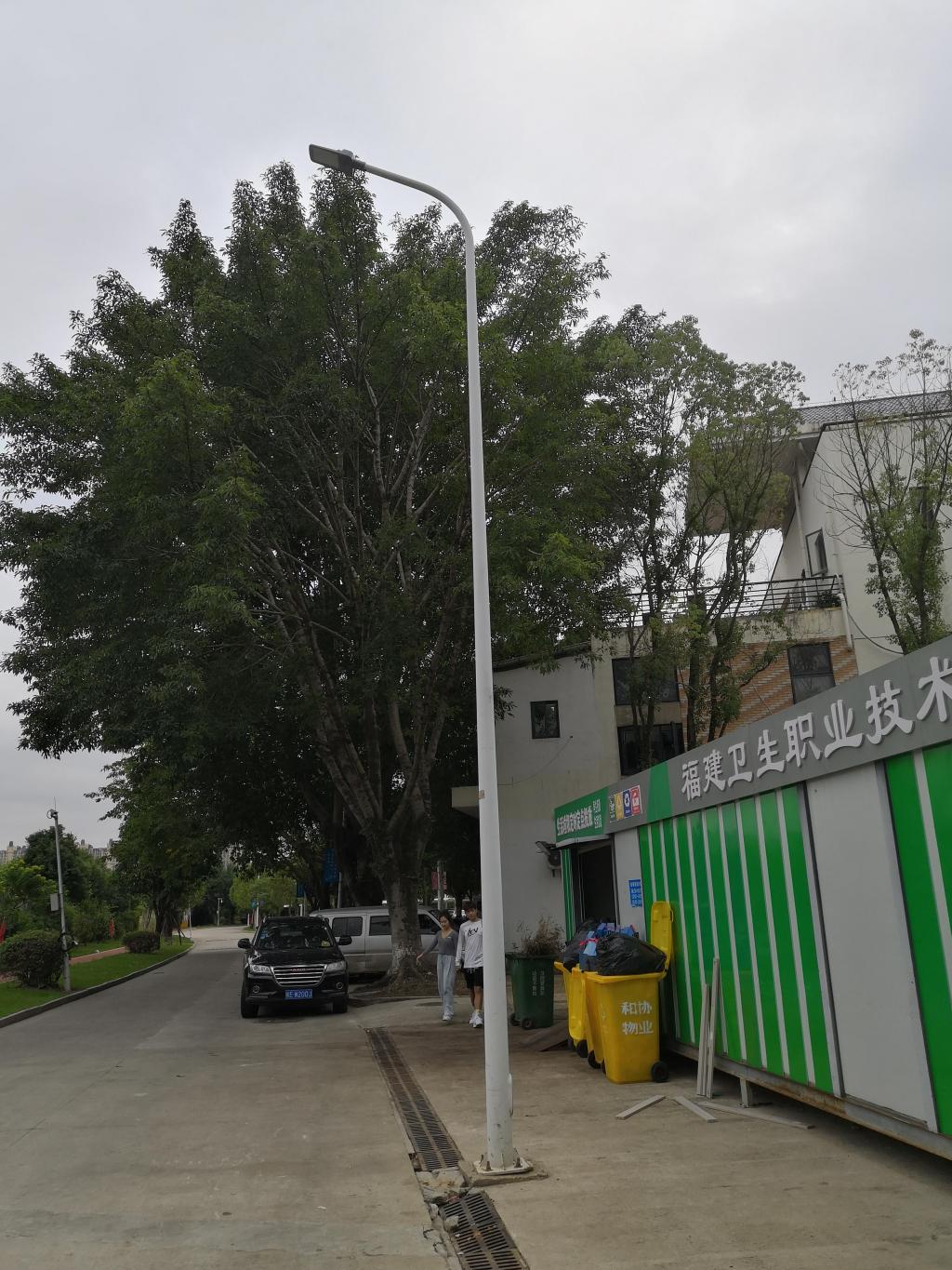 为进一步推进绿色学校建设工作,有效地促进学校节能降耗,2021年10月,我校更新环校路45盏老旧高杆路灯为节能LED灯。同时,在采光良好的路段安装太阳能路灯7盏。