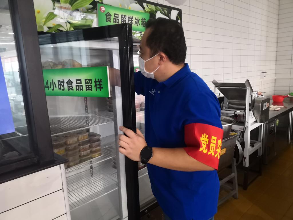 支部党员突击队深入三个食堂一线,对食材采购与索票索证台账、食品留样、从业人员健康证、食材储藏,食品加工环节与加工环境、售卖与就餐环境、人员佩戴口罩、环境消杀与记录、餐厨具洗涤消毒及记录、厨余垃圾回收、消毒液配备、食品从业人员健康码、行程码、核酸检测报告等涉及生产经营与疫情防控方面的工作进行详细检查,并就薄弱环节提出整改意见。