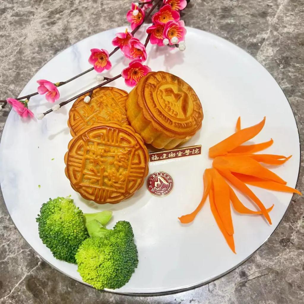 今年,学校组织各食堂推出印刻有校徽与校训LOGO的豆沙和凤梨口味月饼,以盲盒形式向8300多名在校FHCers免费派送。每款定制月饼都是颜值与口味并存,不仅传递着学校对同学们的关心祝福,也承载着学校的文化元素,这是独属于闽卫人的中秋福利。
