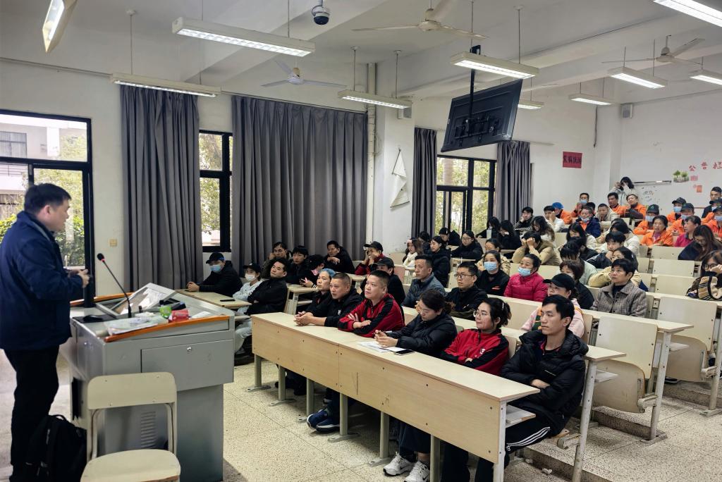 12月25日,我校特邀食安领域专业培训师黄振舜老师主讲膳食安全专题讲座。讲座由后勤管理处林小朋老师主持,膳委会学生及食堂员工代表参加。