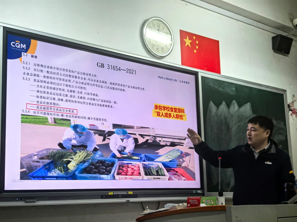 讲座中,黄振舜结合近年来社会关注度较高的食品安全典型事件,深入剖析事件发生的深层根源,复盘其中的惨痛教训,强调从食材源头采购到终端供应的全链条防护,让“食品安全无小事”的理念真正入脑入心。同时,他还聚焦实操应用,系统性讲授守护“舌尖安全”的实用技能,助力参会人员筑牢日常食安防护屏障:一是辨异物,详解食品中毛发、塑料碎屑、虫害残留等异常物质的快速辨别方法,切实提升大家的风险警觉性;二是明规范,深度解读食堂操作的卫生准则与标准化流程,明确食品安全背后的制度支撑;三是判新鲜,分享肉类、蔬菜、水果等食材新鲜度的快速甄别技巧,围绕“看色泽、闻气味、触质感”三大核心维度传授精准判别食材新鲜度的方法。