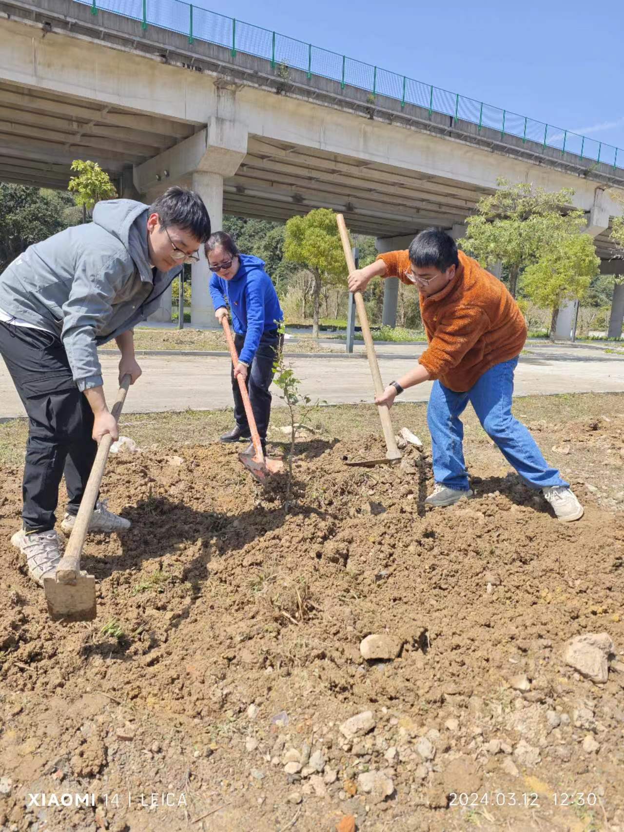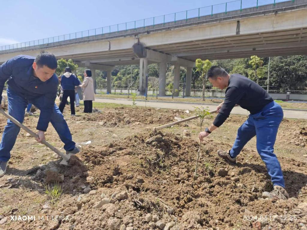 扶风沐阳,万物竞发,师生们通力合作,挖坑、提苗、入穴、填土,最后为新栽下的荔枝苗浇水,在辛勤劳动的同时,收获着成长的快乐。