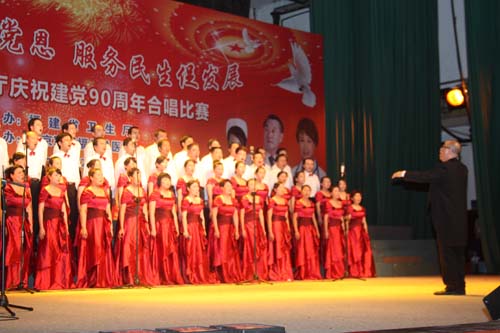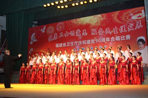 由省卫生厅主办的庆祝中国共产党成立90周年“健康卫士颂党恩 服务民生促发展”合唱比赛,6月14日下午在福州总院礼堂隆重举行,共有省属医疗卫生单位13个团队参加了比赛,我院领导和教职工60人组成的合唱团,带着《在灿烂阳光下》、《七律·人民解放军占领南京》两首曲目、带着饱满的热情和良好的精神风貌参加了比赛,荣获二等奖。