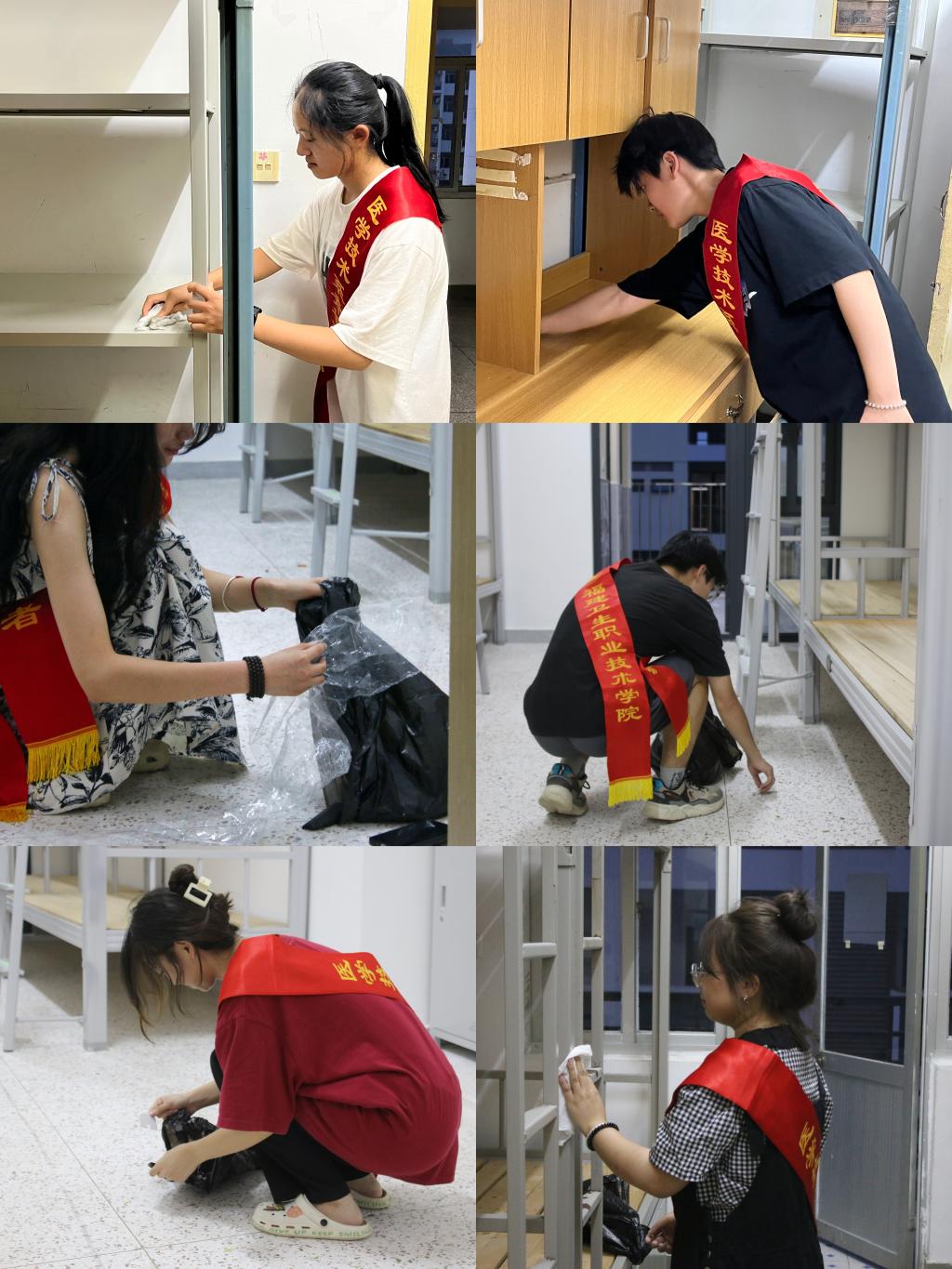 秋阳朗照,秋风送爽。为落实学校迎新工作安排,充分发挥师生党员的先锋模范作用,创建干净、整洁的宿舍环境,切实保障广大同学身体健康。9月11日下午,在医学技术系党总支的统一组织下,学生第一、第二党支部带领系团学干部以及40余名志愿者,深入新生寝室开展卫生打扫工作,以实际行动迎接2023级新生入学。医学技术系党总支书记柯琼莺、党总支副书记林燕、各学生支部书记等参加活动。