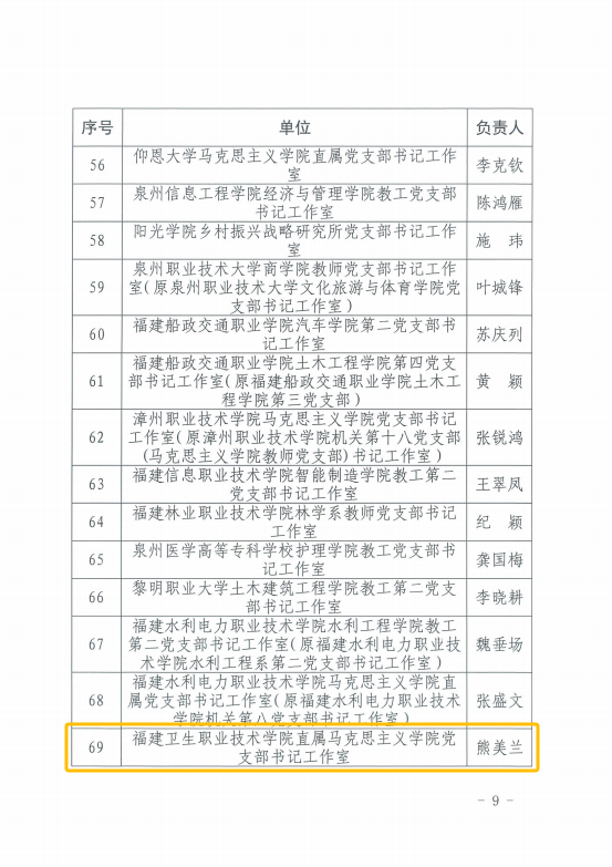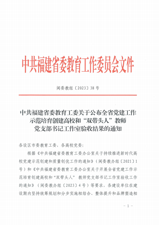 近日,福建省委教育工委印发了《关于公布全省党建工作示范培育创建高校和“双带头人”教师党支部书记工作室验收结果的通知》,我校直属马克思主义学院党支部书记工作室顺利通过验收。