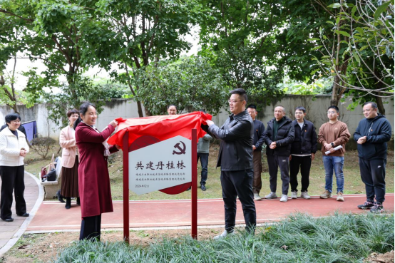 仪式上,我校后勤管理处党支部书记王钝锐简要介绍了两校后勤管理处党支部开展支部结对共建的情况,以此为契机将福建农业职业技术学院部分丹桂等苗木“移居”至我校校园步道以及各宿舍园区,为我校校园景色增添新的色彩。随后,艾松军与黄晓梅共同为支部共建“丹桂林”揭牌。