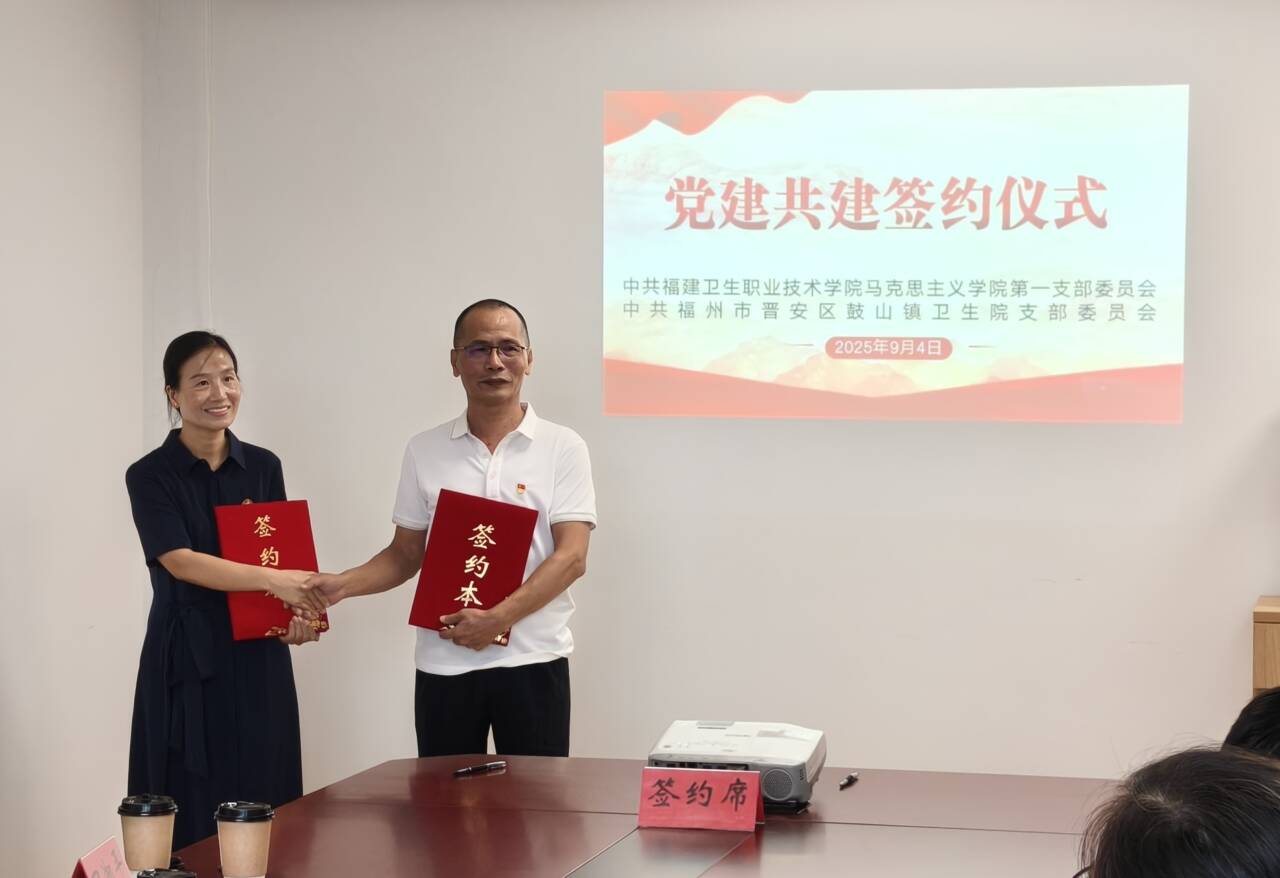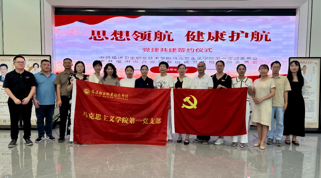 为深入贯彻落实新时代党的建设总要求,推动基层党组织建设提质增效,9月4日,中共福建卫生职业技术学院马克思主义学院第一支部委员会与中共福州市晋安区鼓山镇卫生院支部委员会举行党建共建签约仪式,正式确立结对共建关系,共同打造“思想领航·健康护航”党建共建新平台。