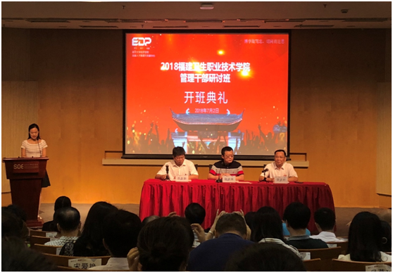7月2日,福建卫生职业技术学院党校第十一期管理干部研讨班在复旦大学经济学院开班。复旦大学经济学院寇宗来副院长、我院党委曾武祈书记、苏友新院长、林建团副书记、纪委李美华书记、黄铭珊副院长、郑翠红副院长出席了开班仪式。参加本次研讨班的有全院副科级以上管理干部及党支部书记共99人。
