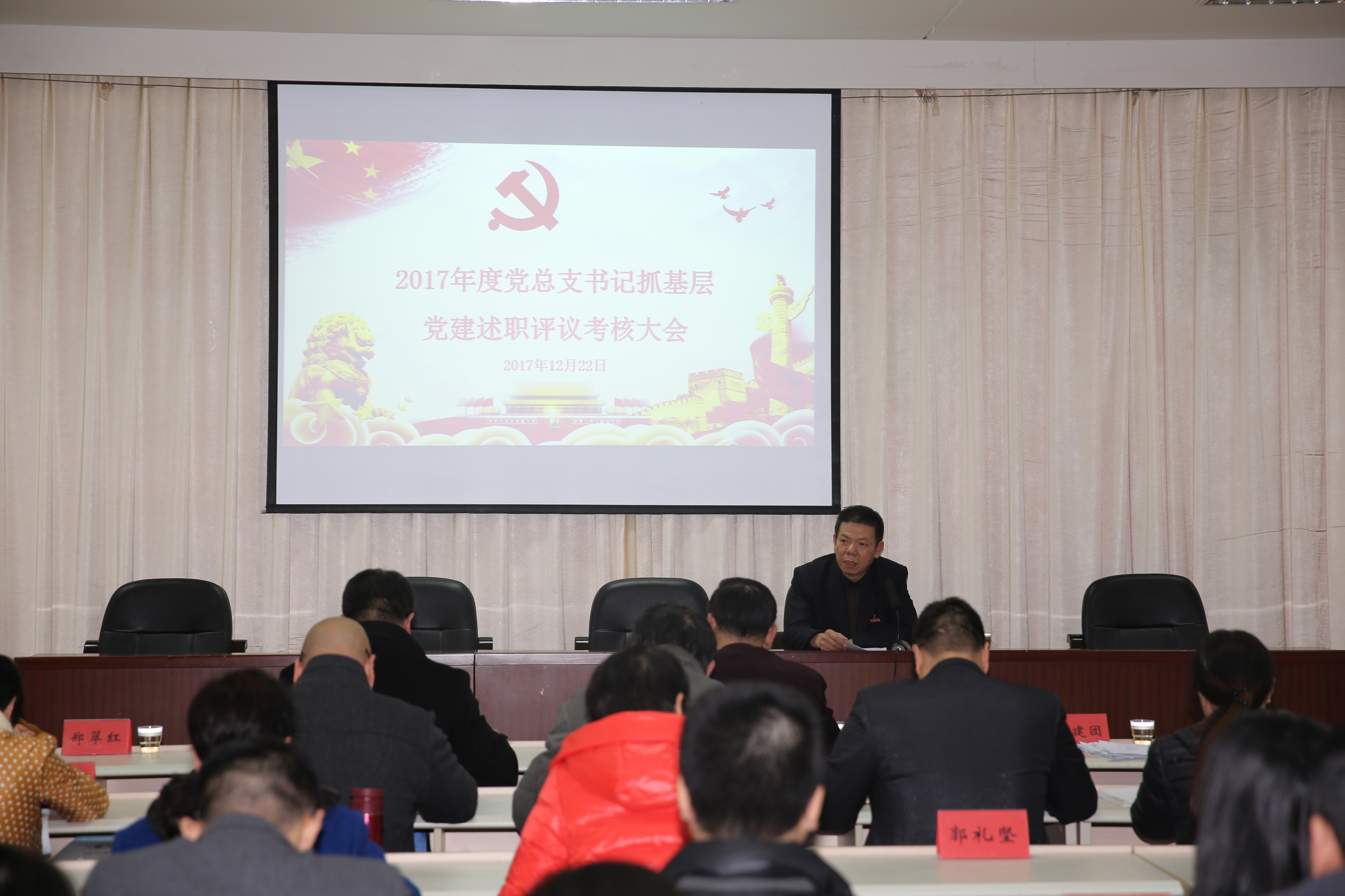 为全面学习贯彻党的十九大精神,深入贯彻落实习近平新时代中国特色社会主义思想,按照新时代党的建设的总要求,全面推动全面从严治党向高校基层延伸,12月22日下午,我院2017年度系(部)、直属党支部书记抓基层党建述职评议考核大会在行政楼六楼第三会议室举行。会议由院党委林建团副书记主持。